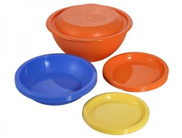 Набор посуды "Дачный". В набор входят миска-салатница с крышкой, 4 тарелки для закусок, 4 тарелки для вторых блюд, 4 тарелки для первых блюд.