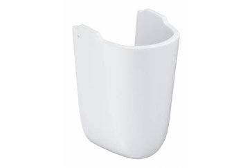 Полупьедестал изготовлен из блестящей санитарной керамики, что гарантирует долговечность поверхности изделия. Раковина с пьедесталом обладает эстетичным внешним видом, она компактна и удобна. Кроме того, пьедестал скрывает в своих недрах малопривлекательную сантехническую аппаратуру (водопроводные трубы, шланги, сифон и пр.), придает интерьеру законченность и изящество.