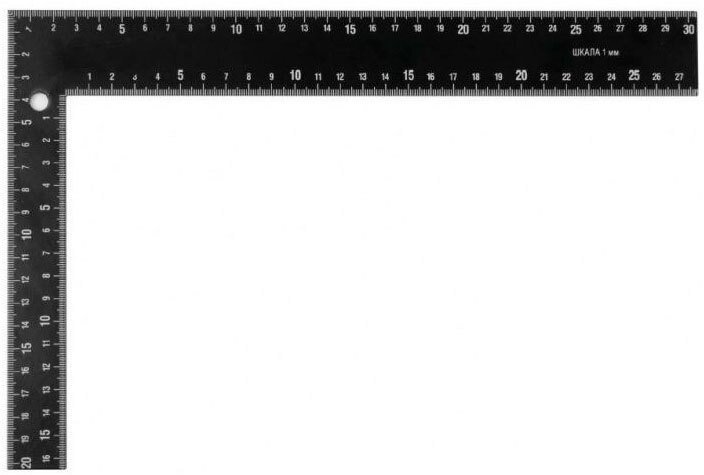 Тип: угольник столярный Материал: нержавеющая сталь Шкала: двусторонняя Особенности: возможность проверки углов 90° Длина: основание — 20 см, перо — 30 см