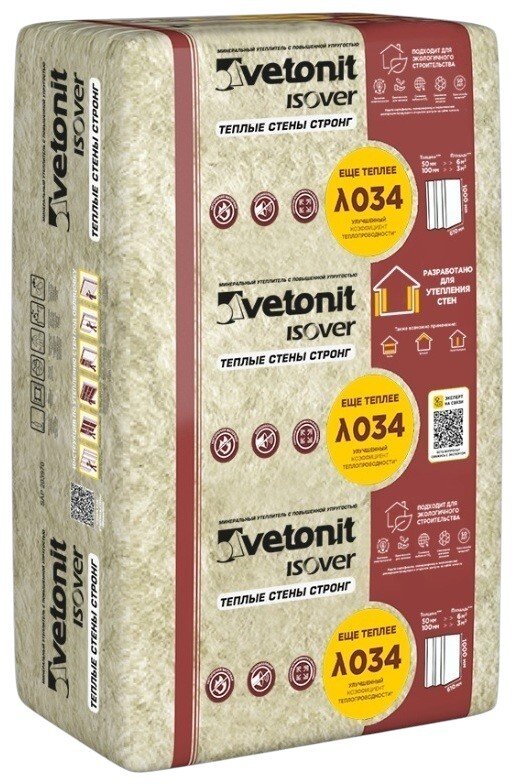 - Утеплитель Ветонит Изовер Теплые Стены Стронг 10шт 1000х610х50мм (0,305м3=6,1м2)