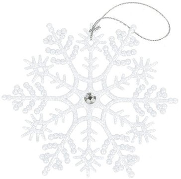 - Украшение подвесное Снежинка Классика белый глиттер 120х10мм