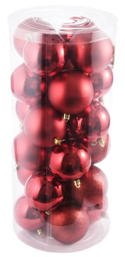 - Набор шаров 24шт 8см красный (глянец: 12шт, матовые: 6шт, глиттер: 6шт), SYQA-012103-R