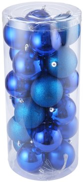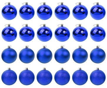 - Набор шаров 24шт 8см синий (глянец: 12шт, матовые: 6шт, глиттер: 6шт), SYQA-012104-B