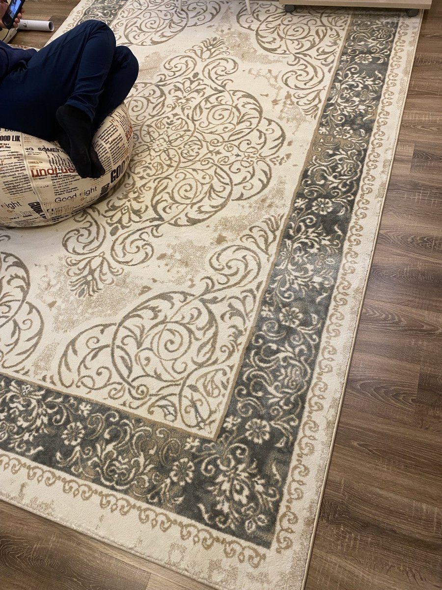 Классный ковер, по хорошей цене. Соответствует фото. Ожидание и реальность совпали. На фото полоса вышла серая, но она серо-оливковая