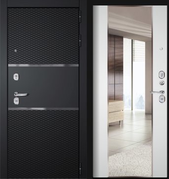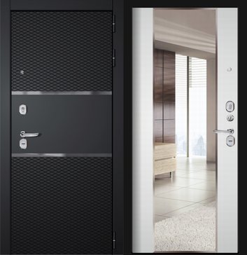 - Дверь входная Диамант зеркало лиственница белая 870х2050мм левая