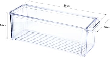 Органайзер для организации порядка в холодильнике.Размер подобран для наилучшего размещения на полках холодильника.Практичная конструкция прямоугольной формы с крышкой.Благодаря крышке Вы можете не волноваться, что внутрь попадёт пыль, грязь или влага. Это делает контейнер идеальным для хранения открытых упаковок с продуктами в холодильнике: запахи не будут смешиваться, а пища дольше останется свежей.Прозрачный пластик показывает содержимое. В передней части органайзер имеет удобную ручку с хватким выступом. Специальная конструкция позволяет составлять несколько органайзеров друг на друга. Безопасный и экологичный, подходит для хранения пищевых продуктов.Сохраняет внешний вид пластика при разных температурах. Органайзеры представлены разных объёмов, что позволит собрать уникальный набор, подходящий под Ваши потребности.