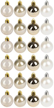 Чтобы декорировать елочку модно и элегантно, подвески на ней должны сочетаться между собой и с убранством комнаты. Важно не просто развесить свой "клад", но и хорошо продумать, где поместить ту или иную деталь. Один из самых простых способов решения этой задачи - выбрать елочные шарики одной цветовой гаммы. В этом вам поможет набор шаров 24 шт с жемчужным отливом, которые сделают украшение вашей новогодней елки еще более привлекательным.