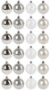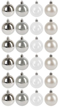 Чтобы декорировать елочку модно и элегантно, подвески на ней должны сочетаться между собой и с убранством комнаты. Важно не просто развесить свой "клад", но и хорошо продумать, где поместить ту или иную деталь. Один из самых простых способов решения этой задачи - выбрать елочные шарики одной цветовой гаммы. В этом вам поможет набор шаров 24 шт с серебряно-жемчужным оттенком , которые сделают украшение вашей новогодней елки еще более привлекательным.