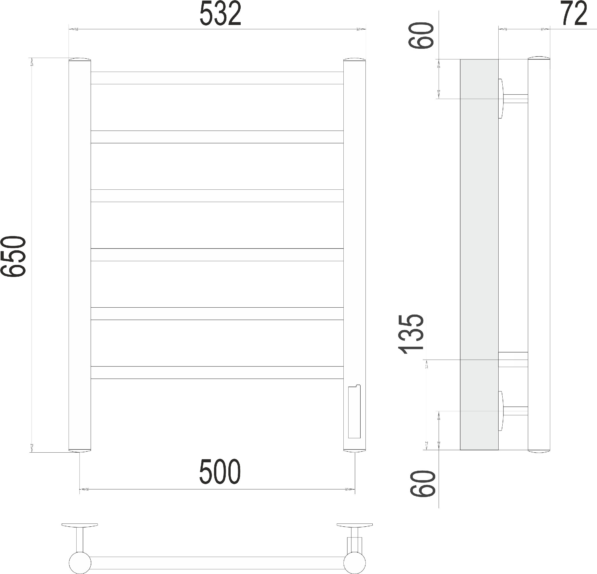 - Полотенцесушитель электрический Terminus Аврора П6 500х650