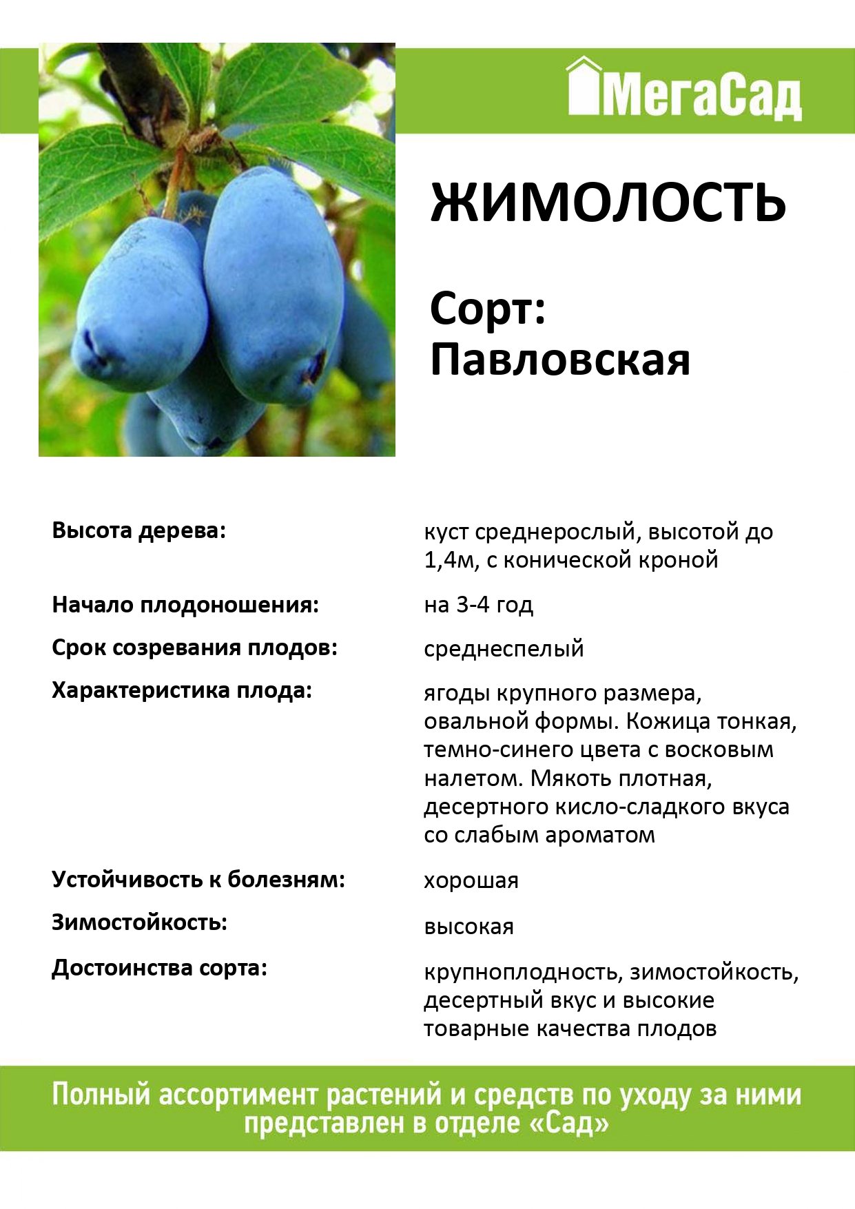 - Саженец Жимолость съедобная Павловская C1,5 25-30см