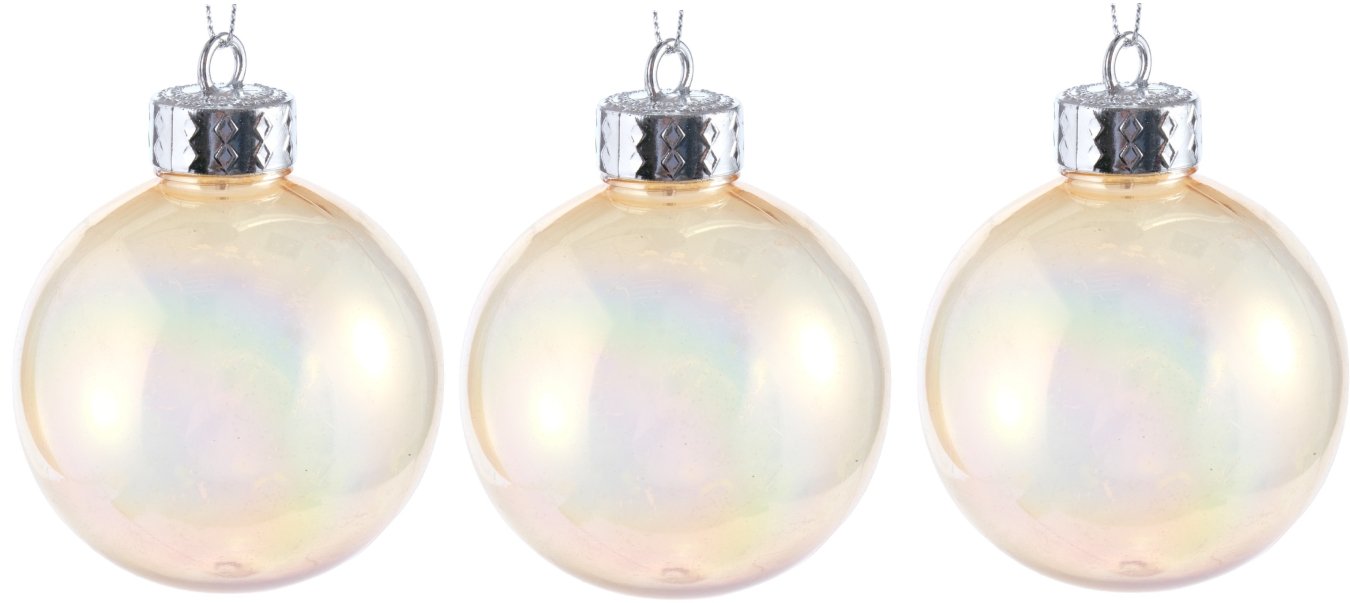 Чтобы декорировать елочку модно и элегантно, подвески на ней должны сочетаться между собой и с убранством комнаты. Важно не просто развесить свой "клад", но и хорошо продумать, где поместить ту или иную деталь. Один из самых простых способов решения этой задачи - выбрать елочные шарики одной цветовой гаммы. В этом вам поможет набор шаров 3 шт с золотым отливом, которые сделают украшение вашей новогодней елки еще более привлекательным.