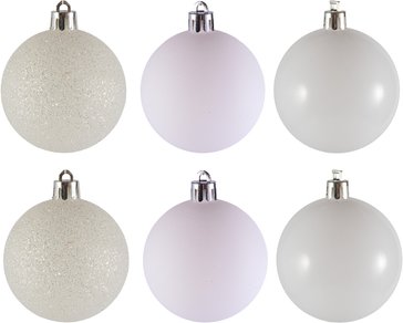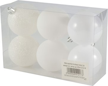 - Набор шаров 6шт 6см белый (глянец: 2шт, матовые: 2шт, глиттер: 2шт), SYQA-0123123-W