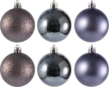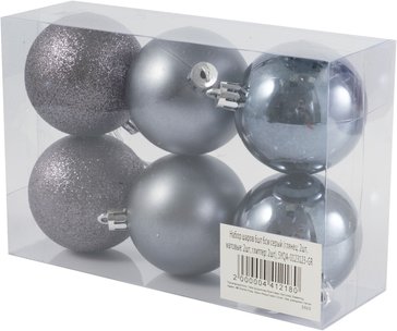 - Набор шаров 6шт 6см серый (глянец: 2шт, матовые: 2шт, глиттер: 2шт), SYQA-0123123-GR