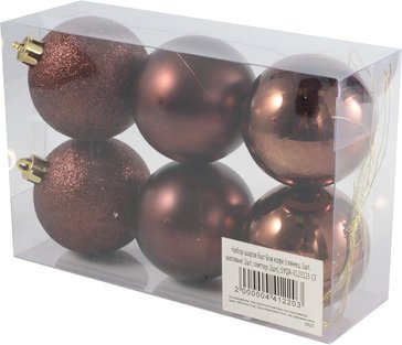 - Набор шаров 6шт 6см кофе (глянец: 2шт, матовые: 2шт, глиттер: 2шт), SYQA-0123123-CF