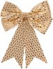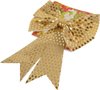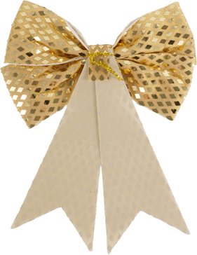 Золотой цвет-это всегда универсальное решение для украшения, тем более, для новогоднего. В этом вам помогут украшения в форме бантиков, которые красиво и лаконично украсят хвойную красавицу и наполнят дом праздничной атмосферой.