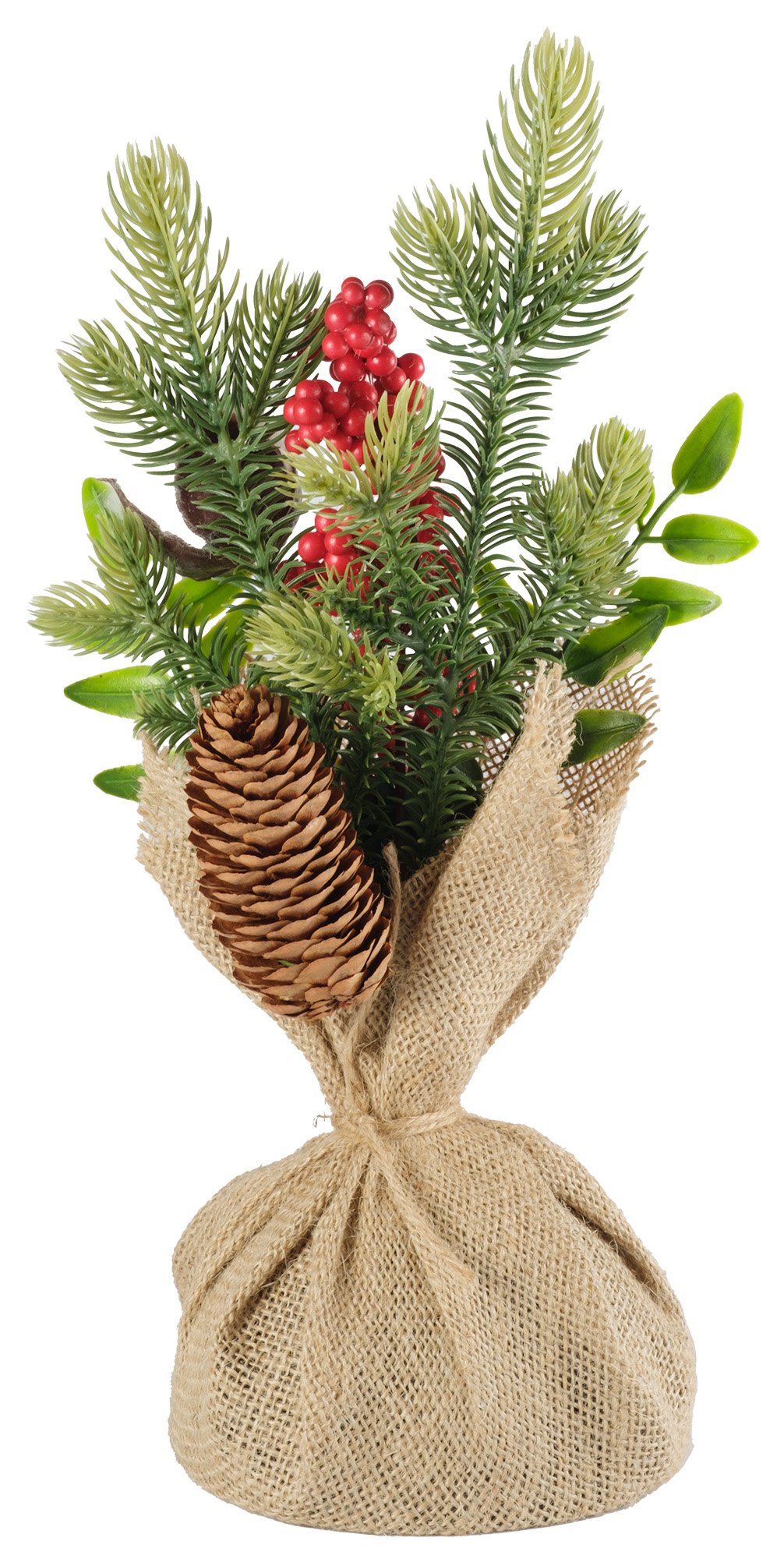 - Украшение настольное 29см с шишкой и красными ягодами, SYSPS-0823125