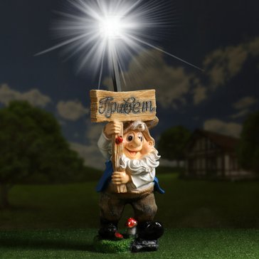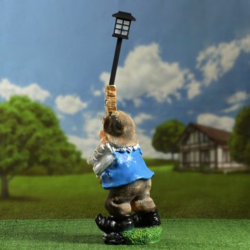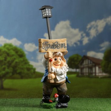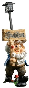 - Фигура садовая Гном Привет с фонарем 57см