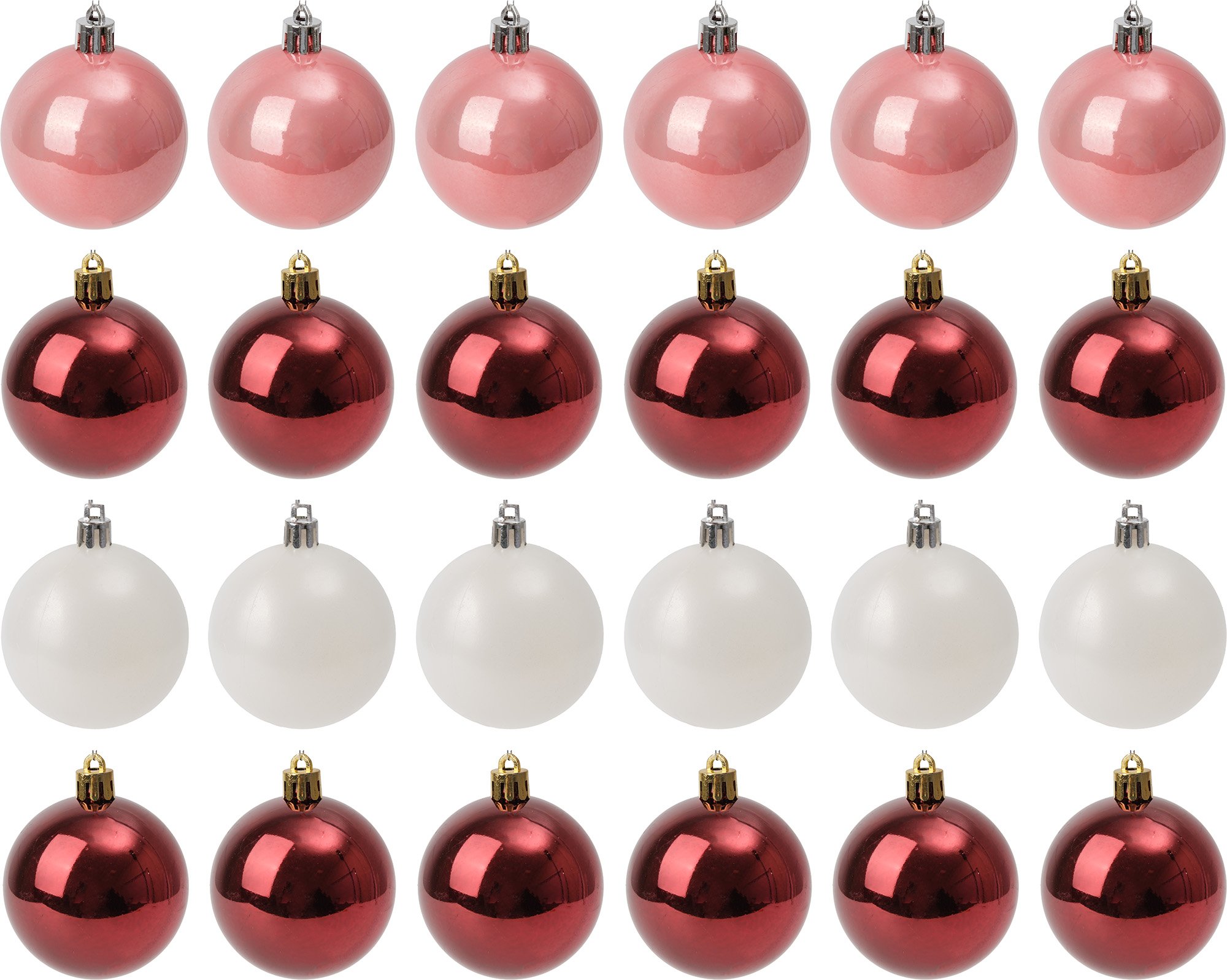 Набор новогодних шаров — идеальное решение для создания яркого и стильного праздничного настроения! В комплекте вы найдёте 24 разноцветных шара размером 6 см, представленных в глянцевом, матовом и перламутровом вариантах. Эти шары станут прекрасным украшением вашей ёлки и подарят радость вам и вашим гостям.