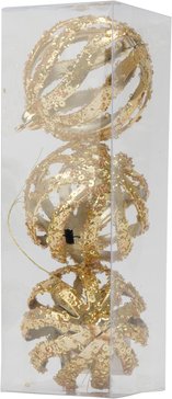 Набор золотых шаров с ажурным узором и блёстками — идеальный выбор для создания праздничной атмосферы! В комплекте вы найдёте три шара диаметром 8 сантиметров, которые станут ярким акцентом в вашем интерьере или незабываемым подарком для близких. Позвольте себе окунуться в мир роскоши и стиля с нашим набором золотых шаров!