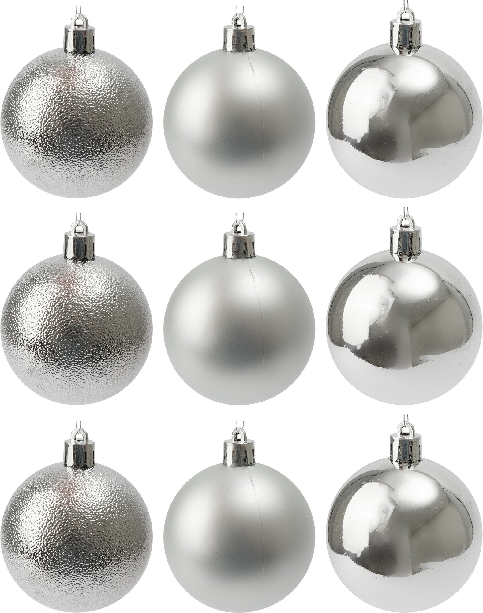 - Набор шаров 9шт 6см серебро, глянец/матовый/блестки, SYQA-0124259