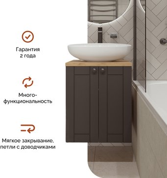 Тумба подходит по дизайну практически ко всем зеркалам и зеркальным шкафам.