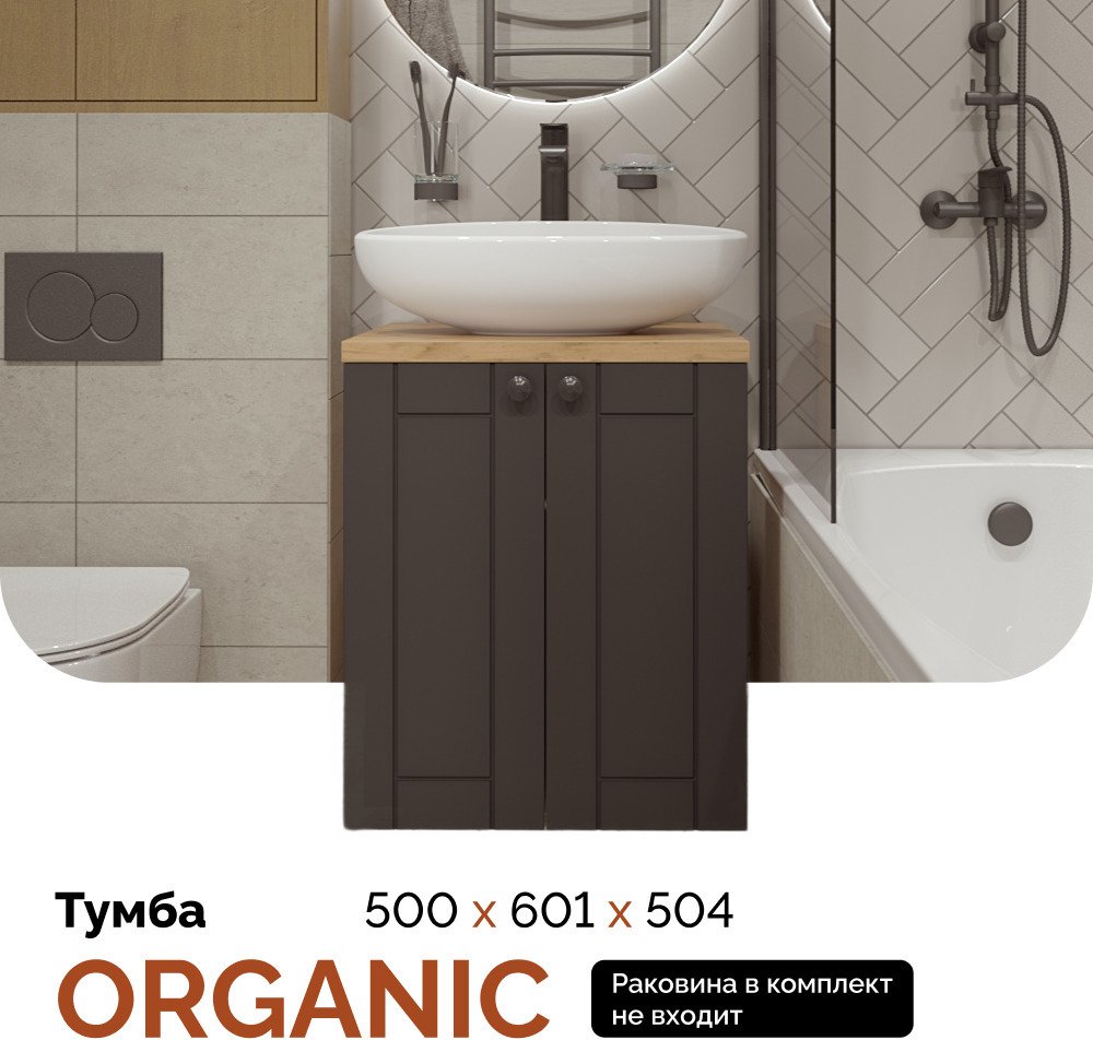 - Тумба подвесная Organic 50см Монолит Дарк