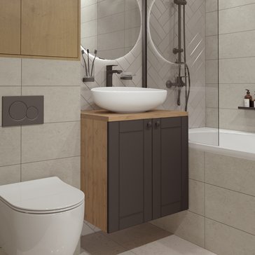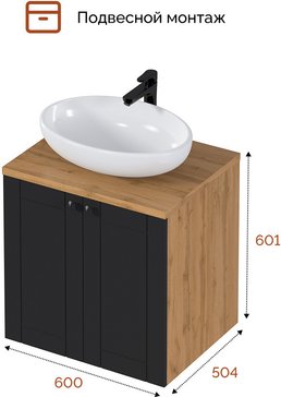 ТТумба подвесная Organic Монолит Дарк подходит по дизайну практически ко всем зеркалам и зеркальным шкафам.