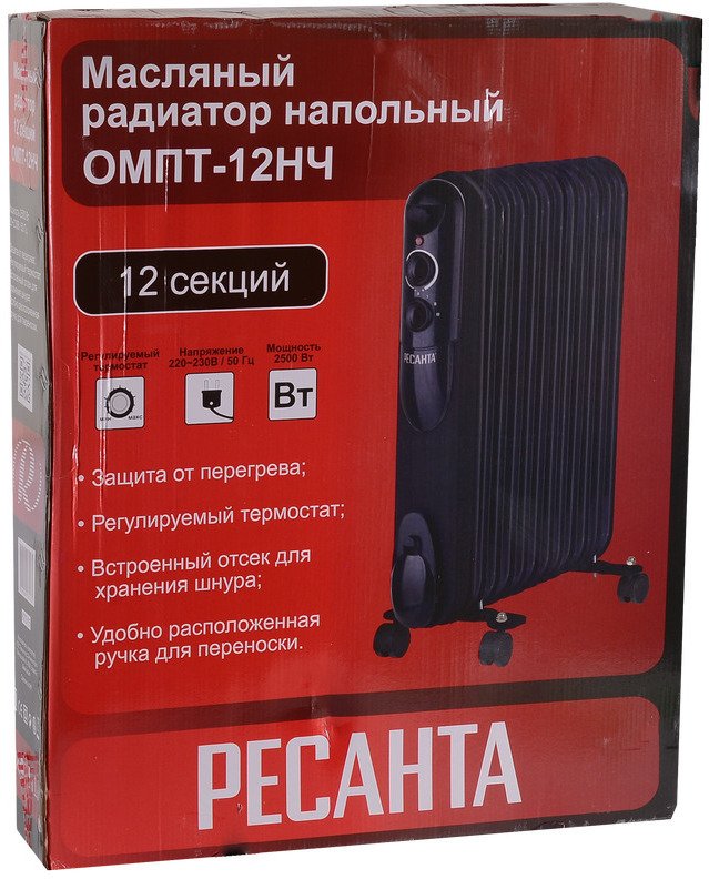 - Радиатор масляный Ресанта ОМПТ-12НЧ 2500Вт