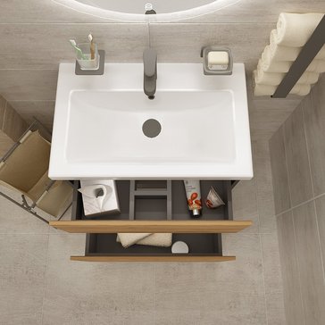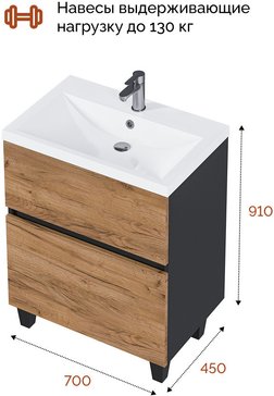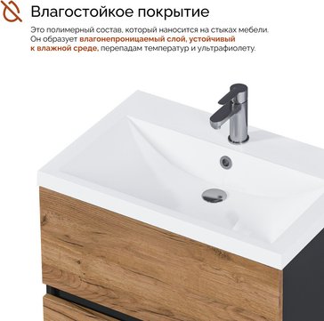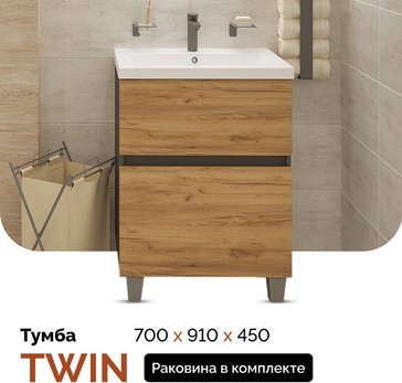 - Тумба напольная TWIN 70см 2 ящика антрацит-дуб крафт золотой в комплекте с раковиной