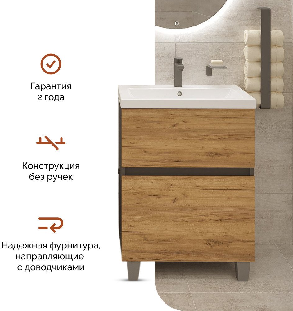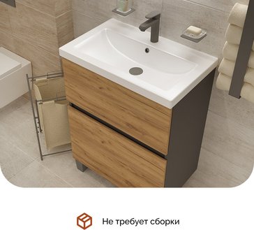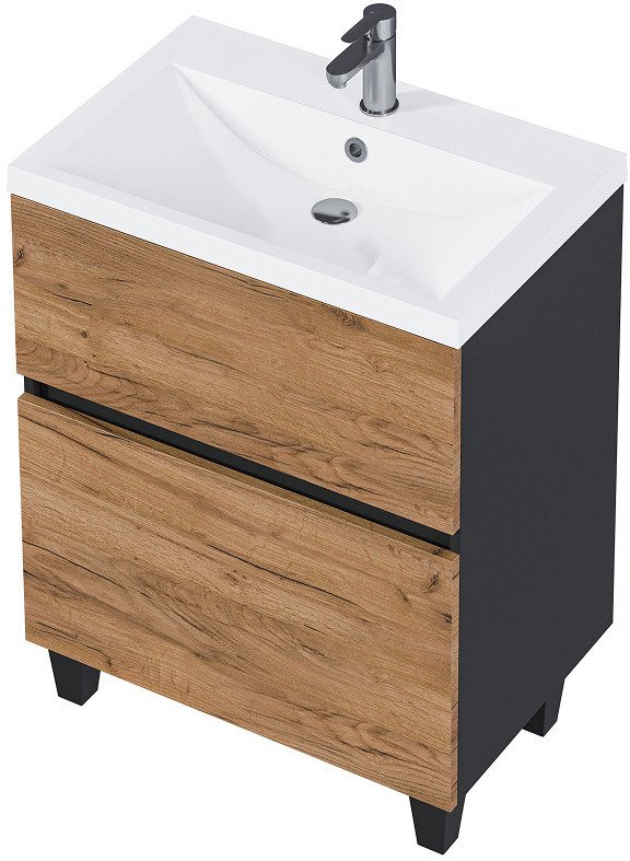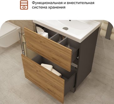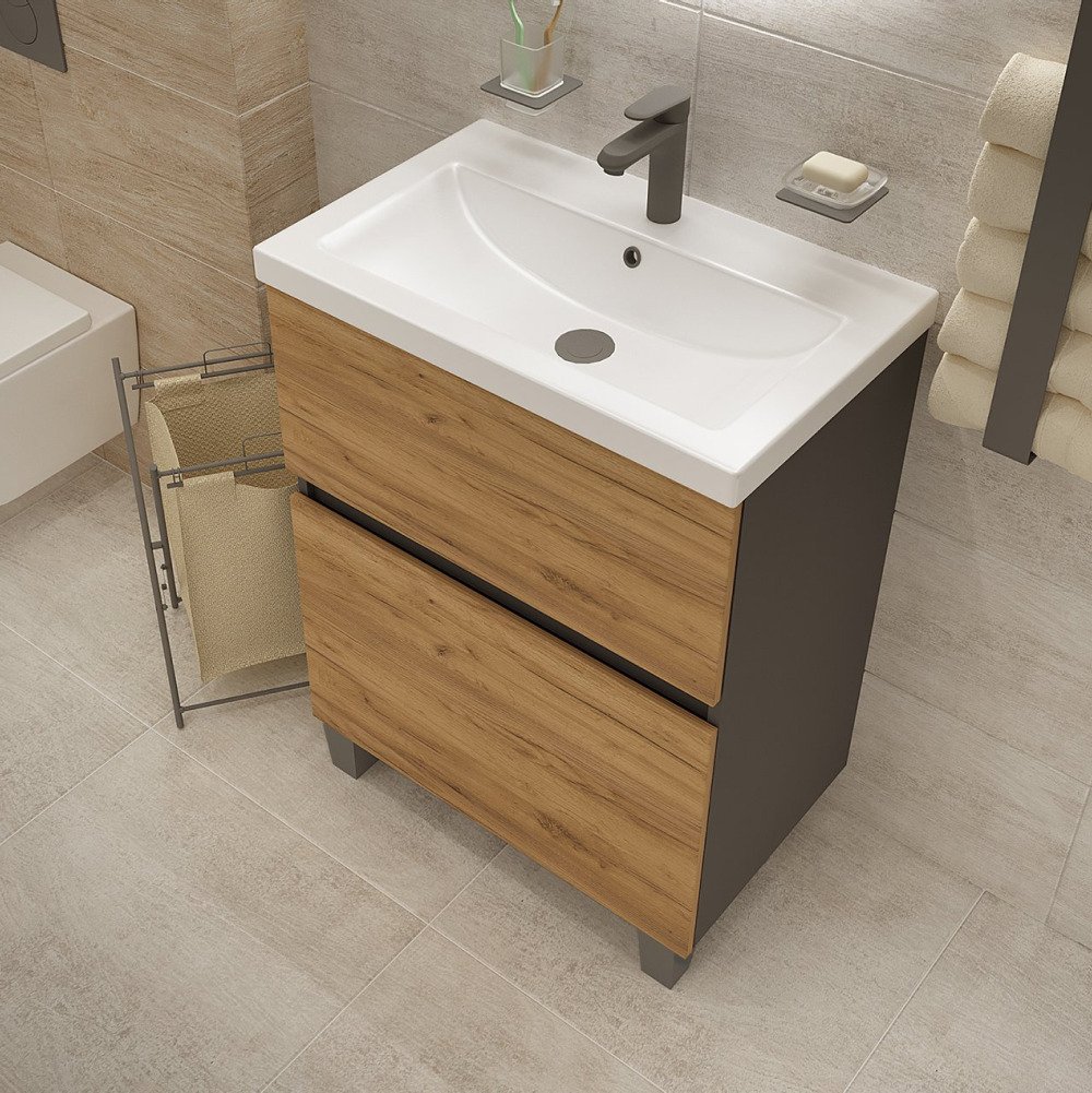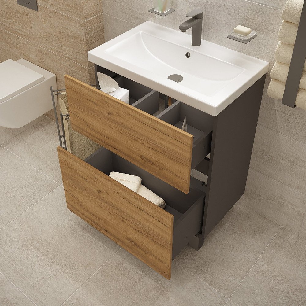 Тумба напольная TWIN 60см 2 ящика антрацит-дуб крафт золотой в комплекте с раковиной
