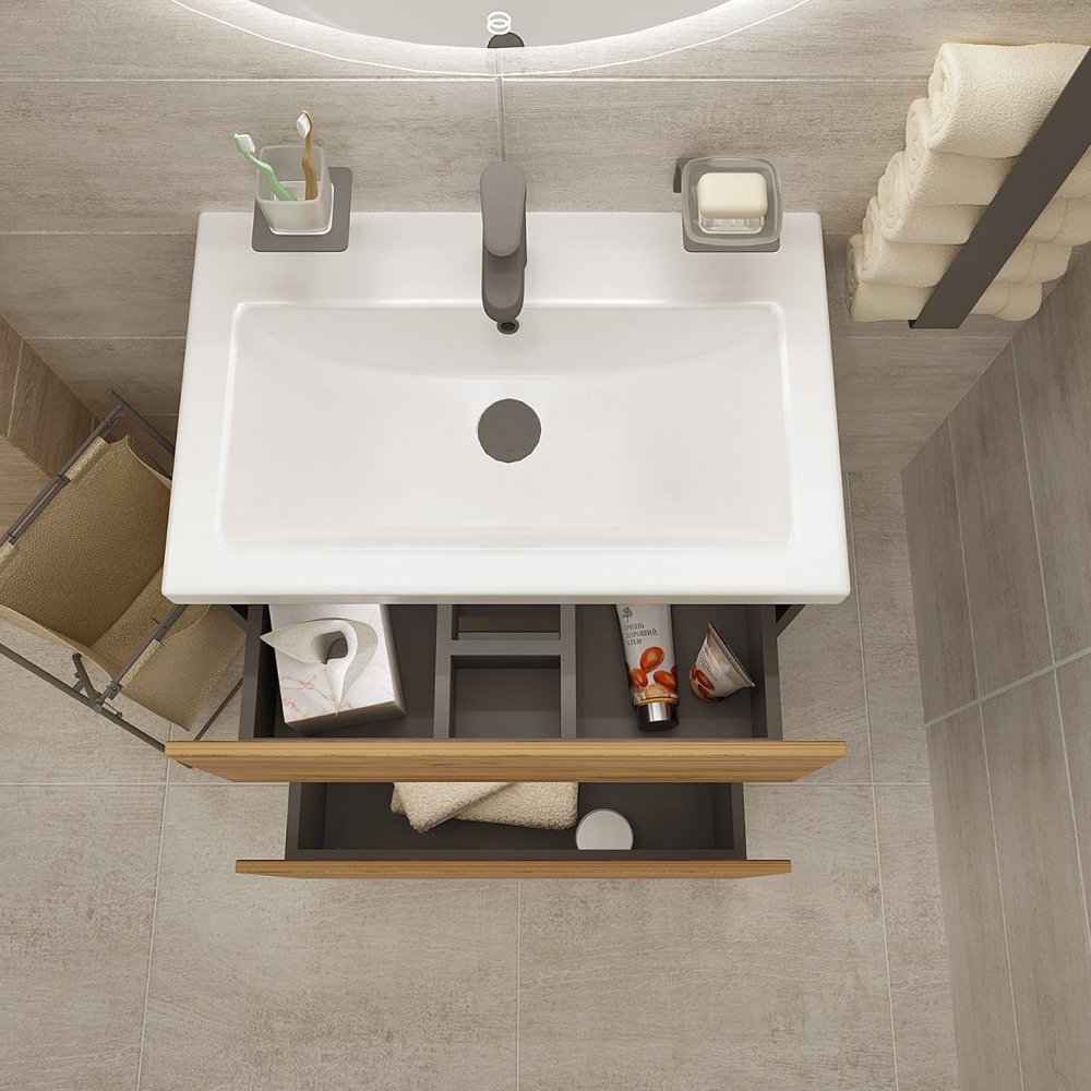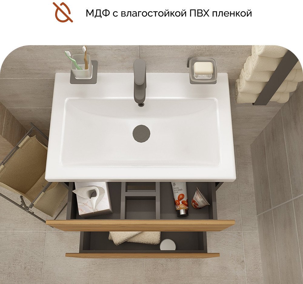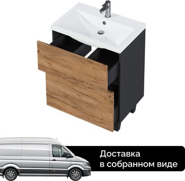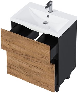 Тумба напольная TWIN 70см 2 ящика антрацит-дуб крафт золотой в комплекте с раковиной