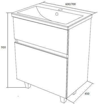 Тумба напольная TWIN 70см белый глянец с раковиной