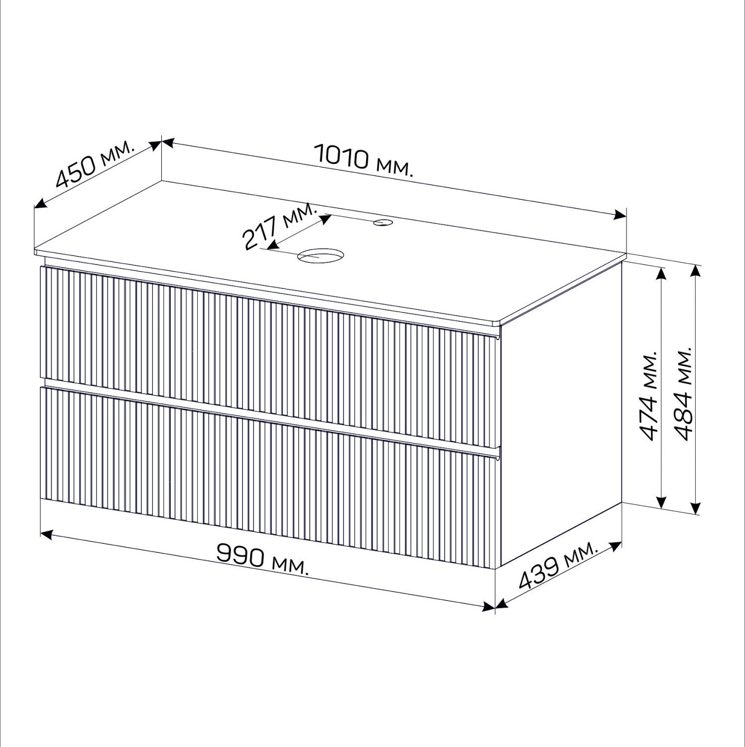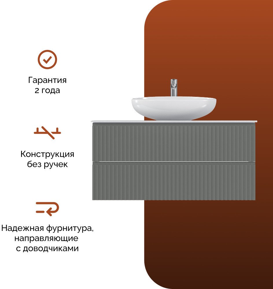 Изящные рифленые фасады, выполненные в духе последних трендов, придают тумбе особый шарм и изысканность. Столешница из керамогранита не только обеспечивает долговечность и устойчивость к влаге, но и добавляет изделию роскошный, премиальный вид.