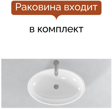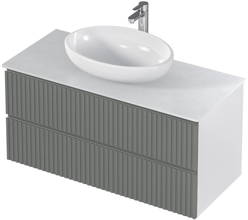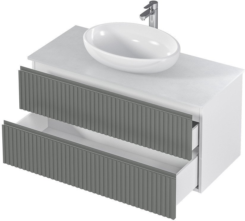 - Тумба подвесная MIX 100см белая/relief gray со столешницей из керамогранита