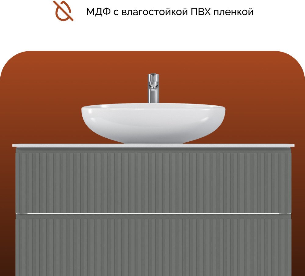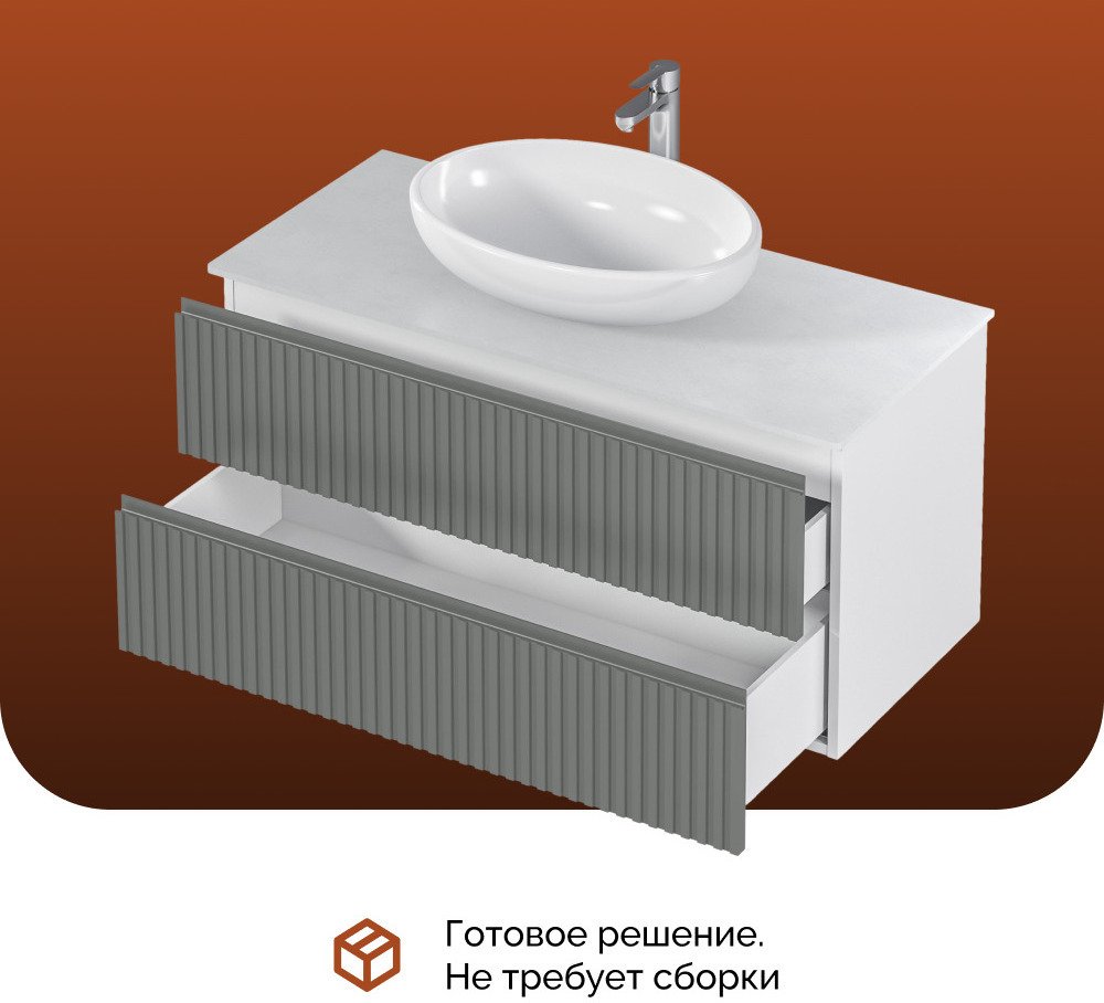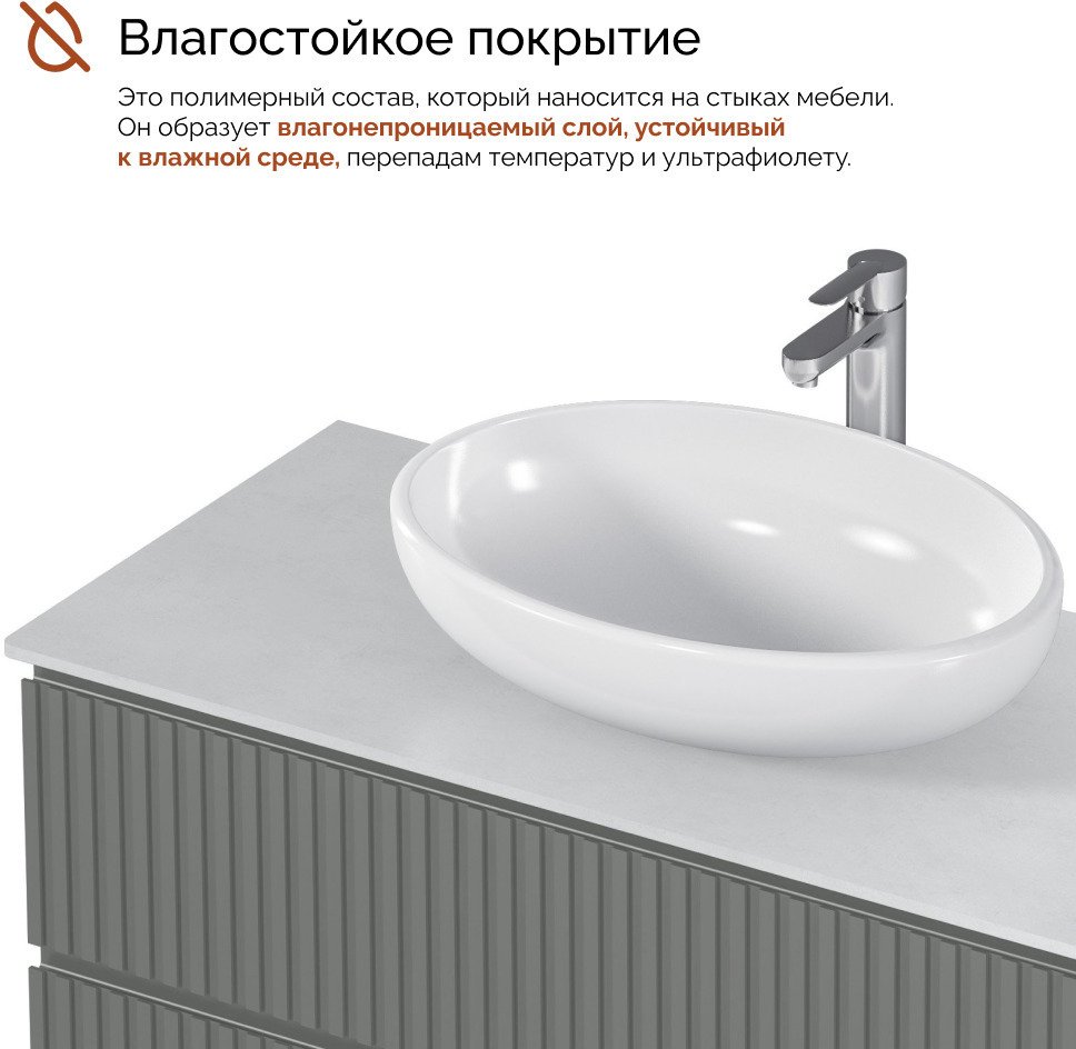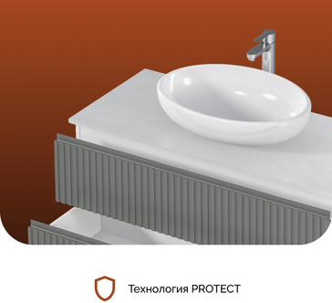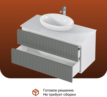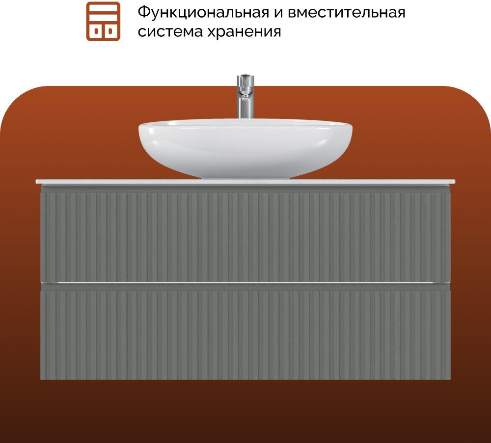 Изящные рифленые фасады, выполненные в духе последних трендов, придают тумбе особый шарм и изысканность. Столешница из керамогранита не только обеспечивает долговечность и устойчивость к влаге, но и добавляет изделию роскошный, премиальный вид.