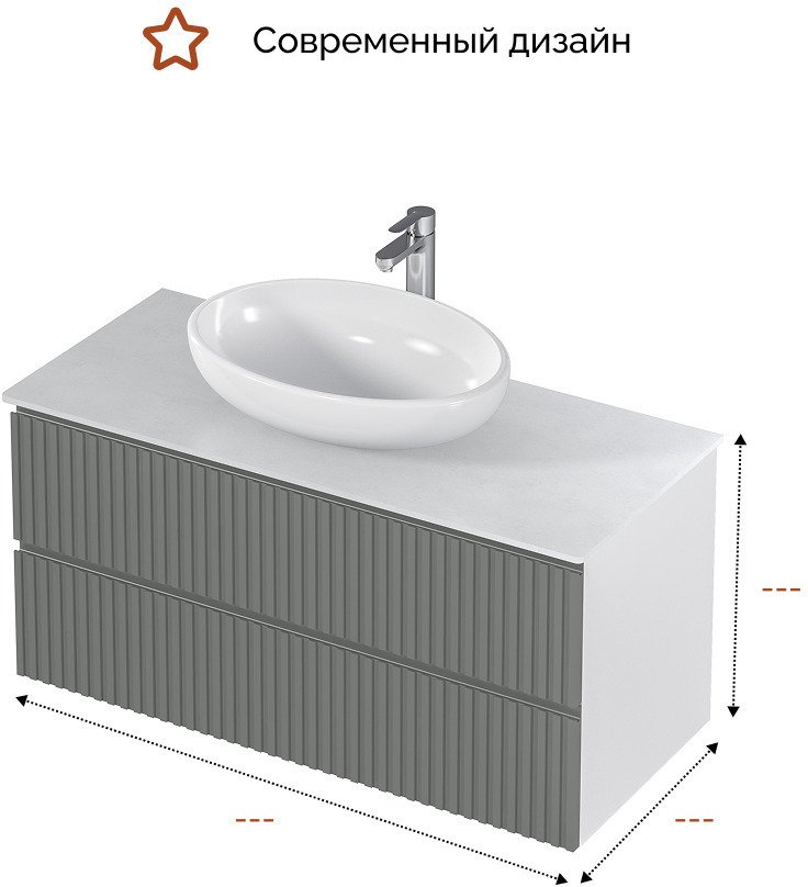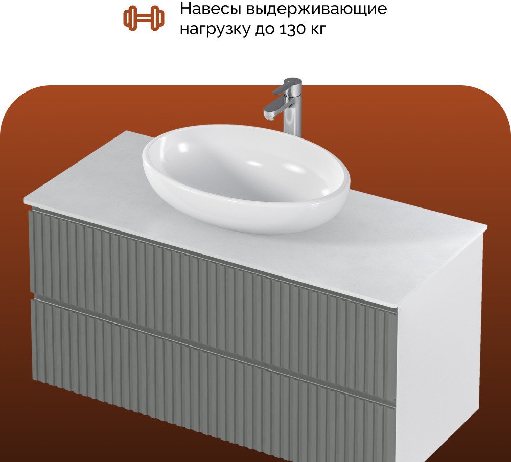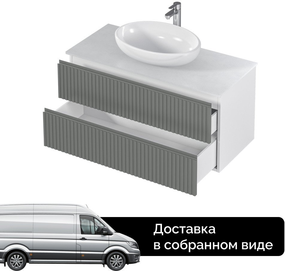 - Тумба подвесная MIX 100см белая/relief gray со столешницей из керамогранита