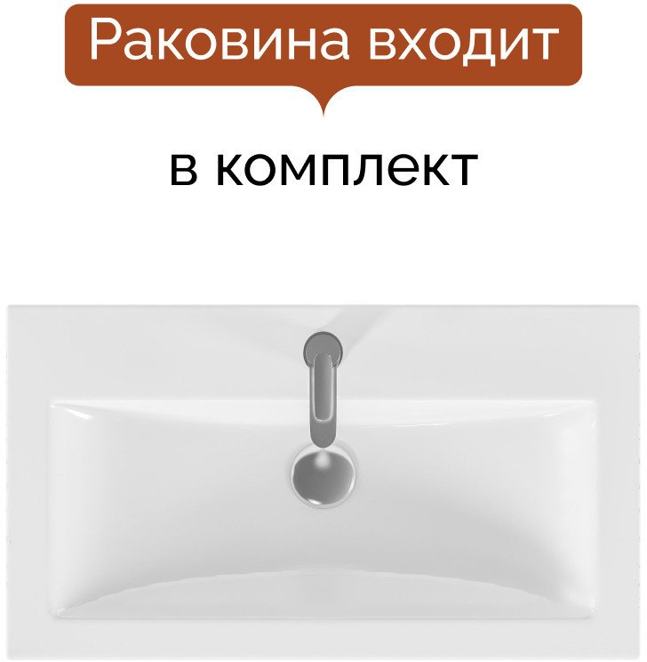Тумба подвесная MIX 80см белая/relief white с раковиной