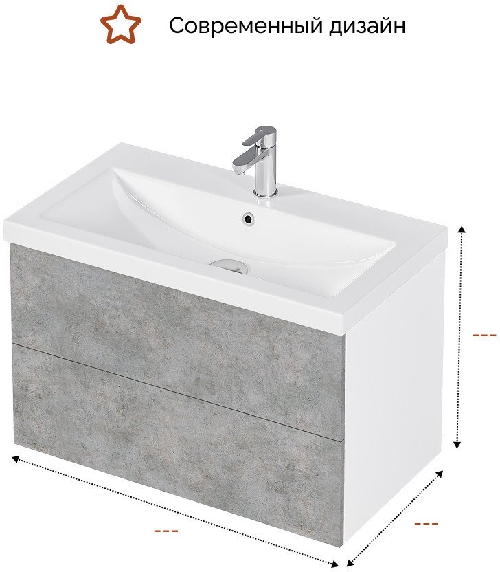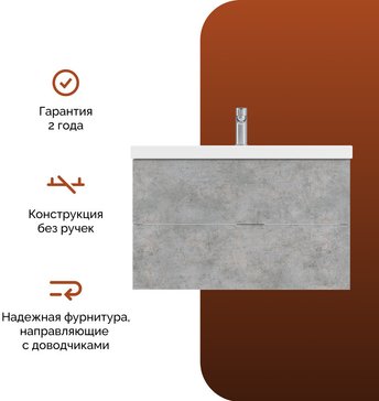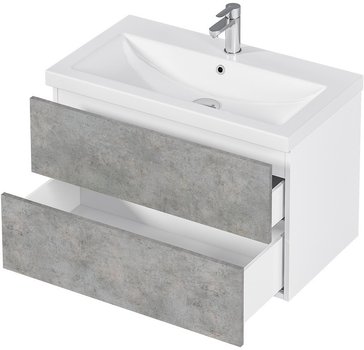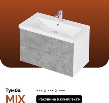 - Тумба подвесная MIX 80см push белая/чикаго светло-серый с раковиной
