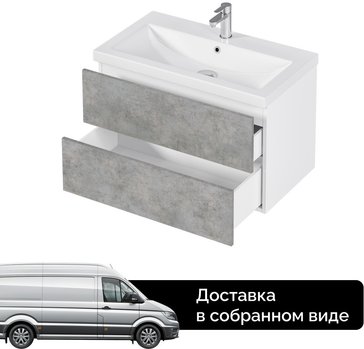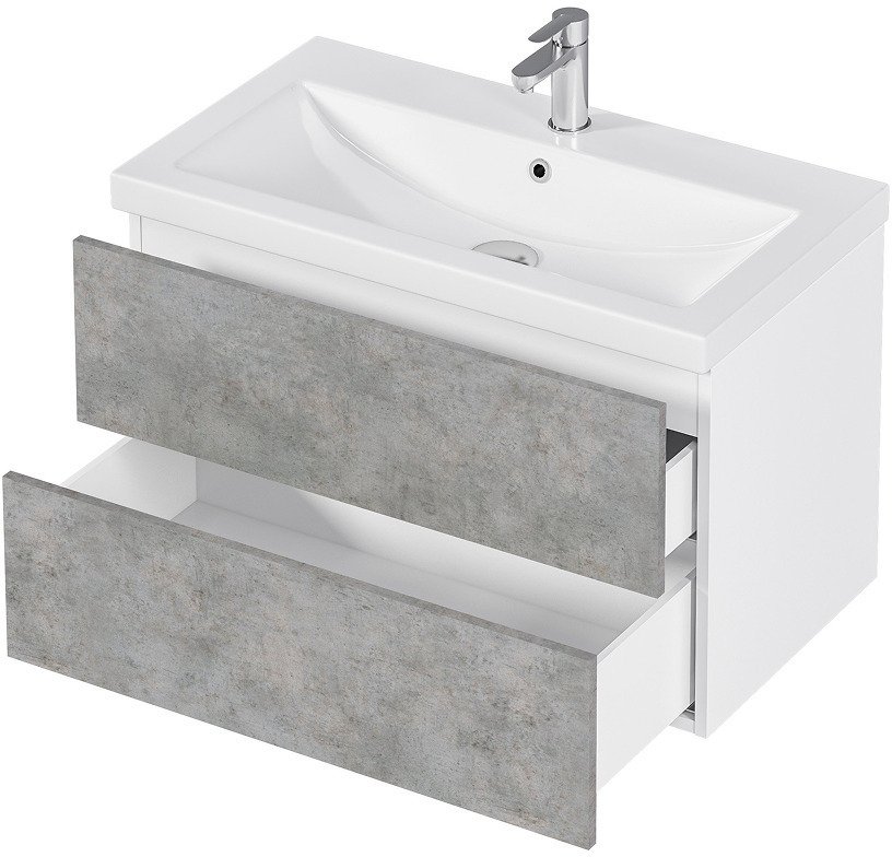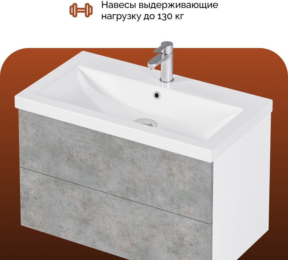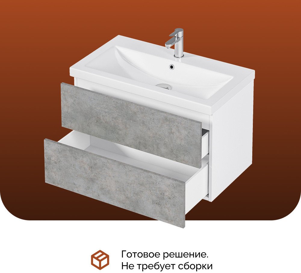 Тумба подвесная MIX 80см push белая/чикаго светло-серый с раковиной