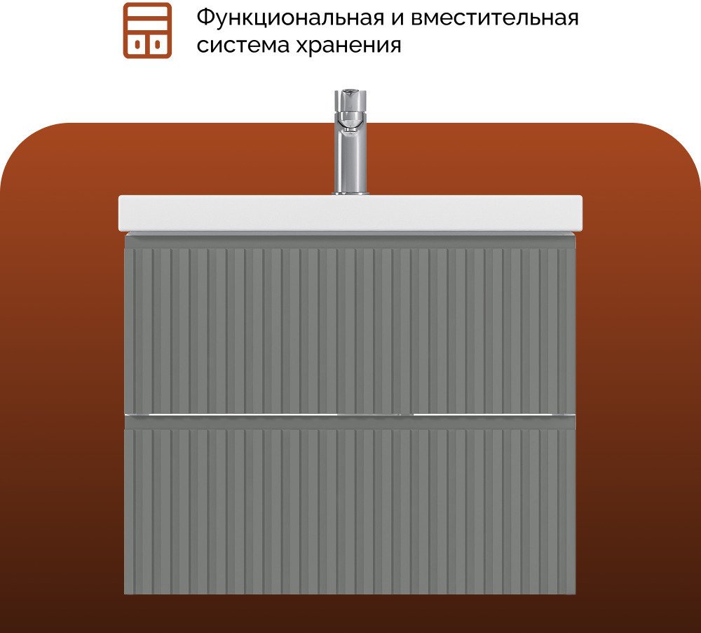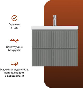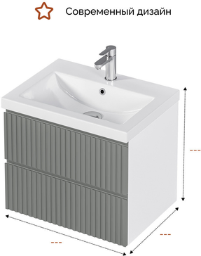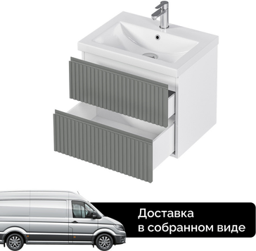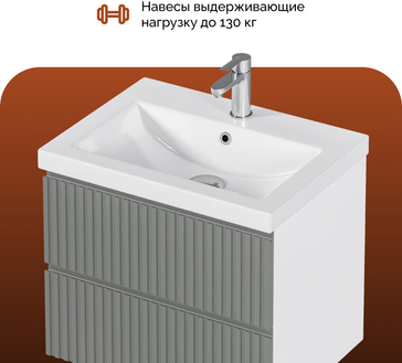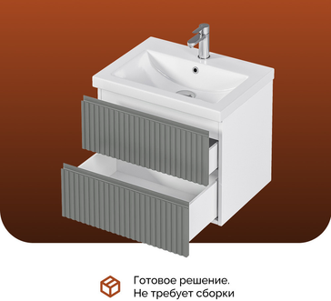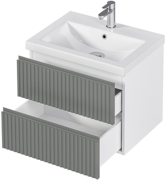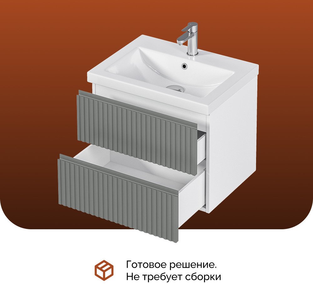 - Тумба подвесная MIX 60см белая/relief gray с раковиной