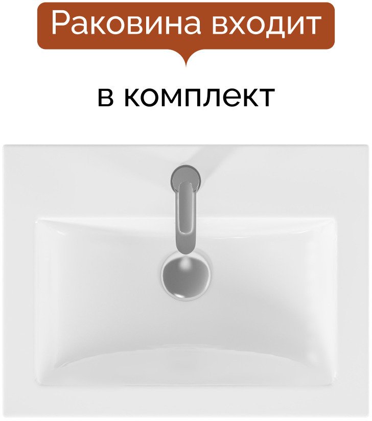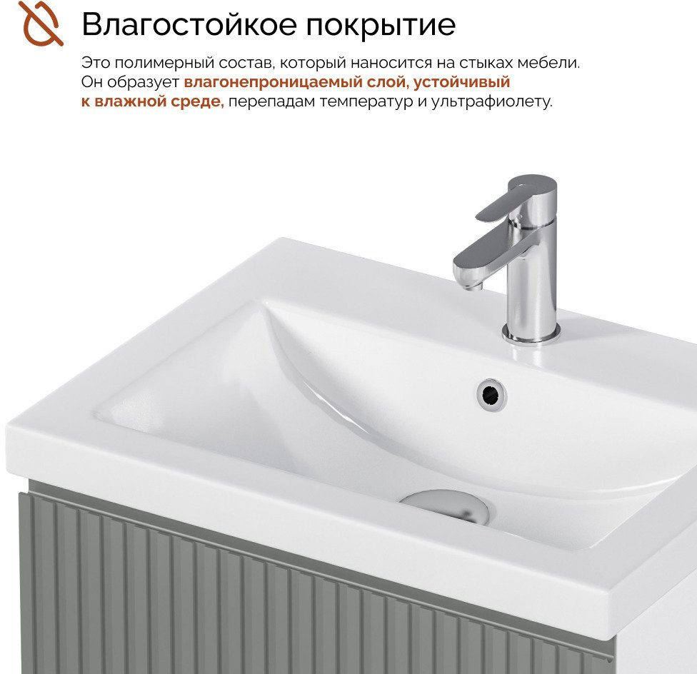 Тумба подвесная MIX 60см белая/relief white с раковиной