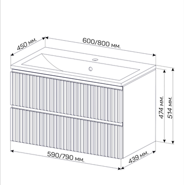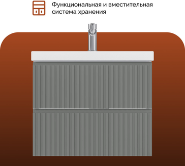 Тумба подвесная MIX 80см белая/relief white с раковиной