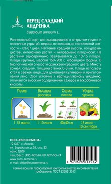 - Семена Перец Андрейка сладкий цв/п 0,2г