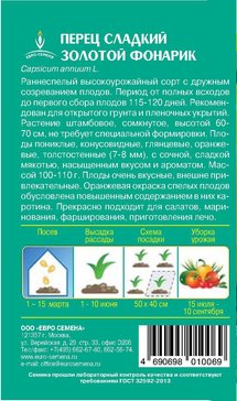 - Семена Перец Золотой фонарик сладкий цв/п 0,2г