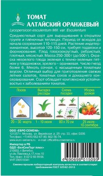 - Семена Томат Алтайский оранжевый цв/п 0,1г