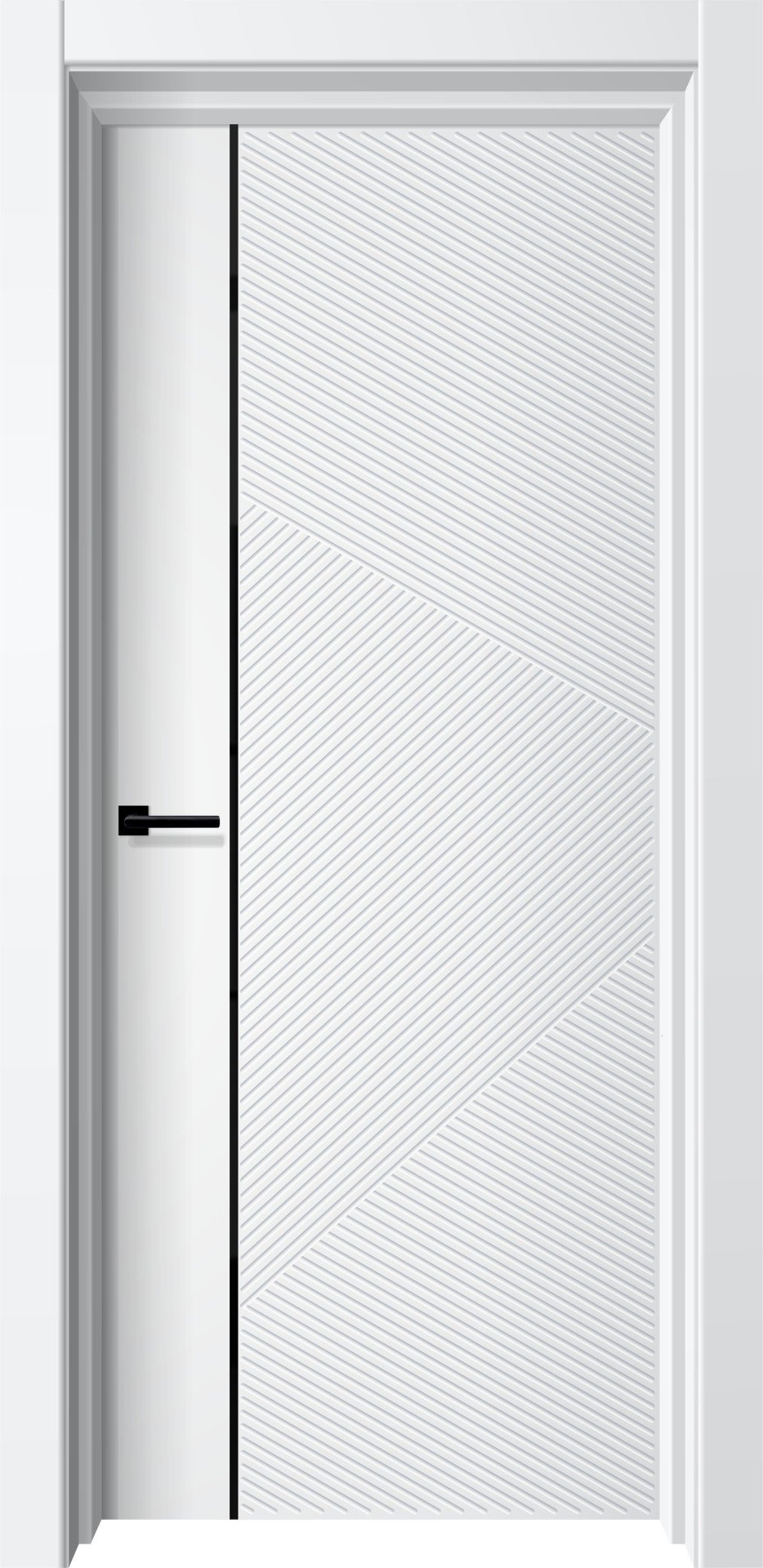 - дверь декорирована черным вертикальным молдингом.