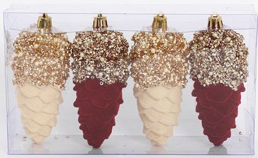 Почему наши шишки станут украшением вашего праздника Премиальная палитра — благородное сочетание винного и шампань создаёт роскошный образ Внушительный размер — 11 см, эффектно выделяются на любом фоне Комплект из 4 штук — гармоничное сочетание оттенков создаёт завершённую композицию Изысканный дизайн — каждая шишка проработана до мельчайших деталей