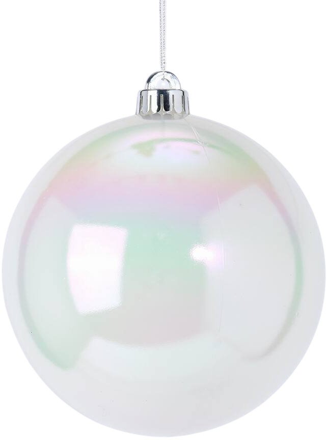 Окутайте дом мягким сиянием зимней сказки с декоративным шаром диаметром 15 см в изысканном перламутровом исполнении. Его поверхность играет оттенками при малейшем движении света — словно застывшие блики северного сияния или нежные переливы морской жемчужины.