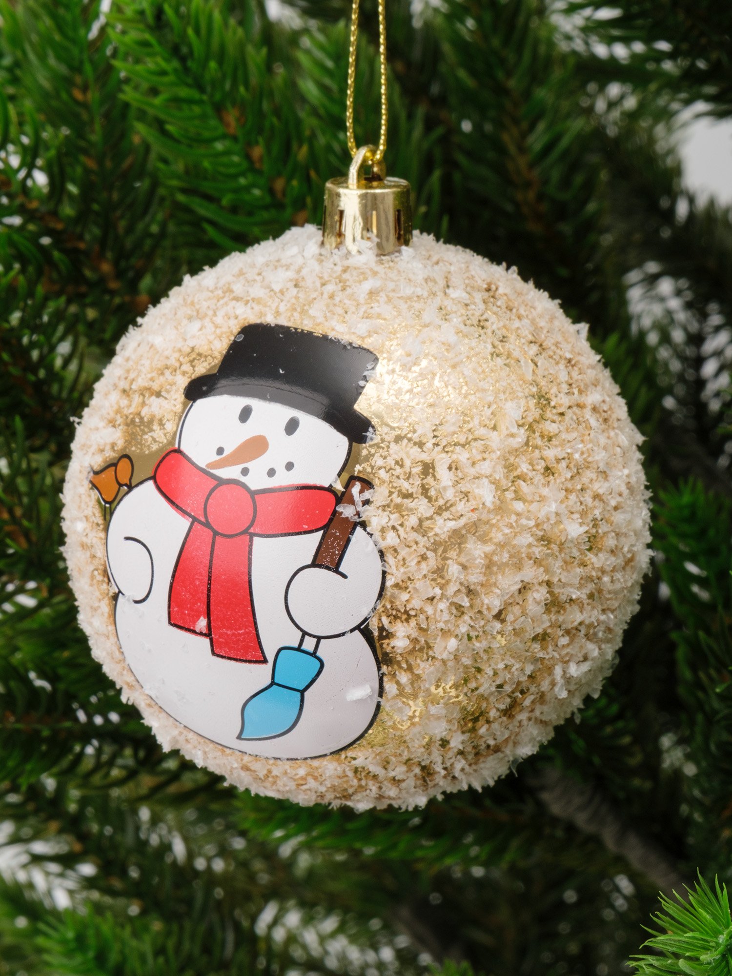 -33%Окунитесь в атмосферу настоящего новогоднего чуда с очаровательным шаром, украшенным милым снеговиком! Этот золотой шар станет настоящим украшением вашей праздничной ёлки и подарит незабываемые моменты радости.
