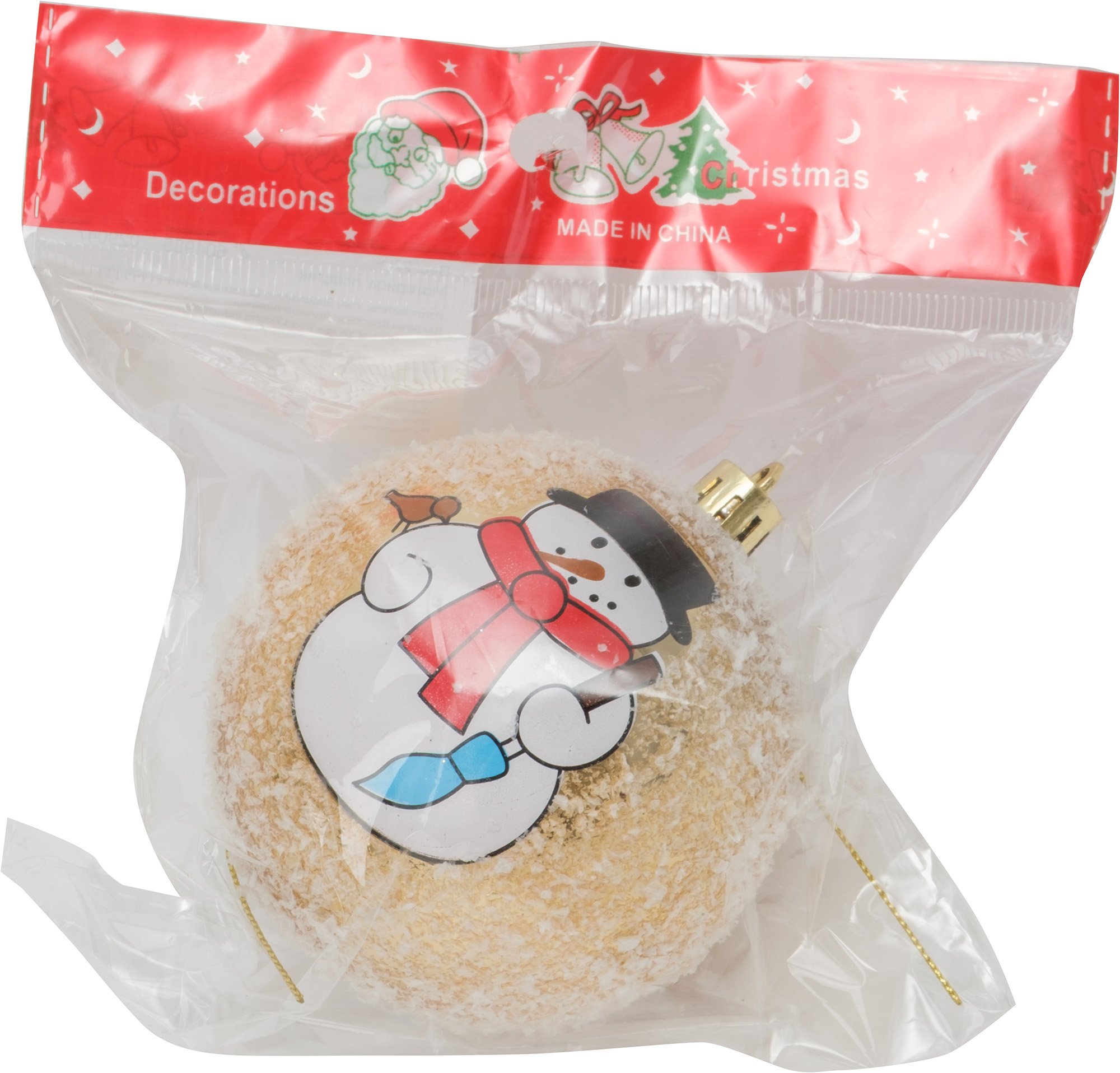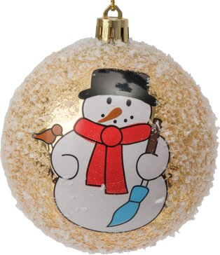 - Шар с узором Снеговик 8см, заснеженный, золото, SYQC2-0125100
